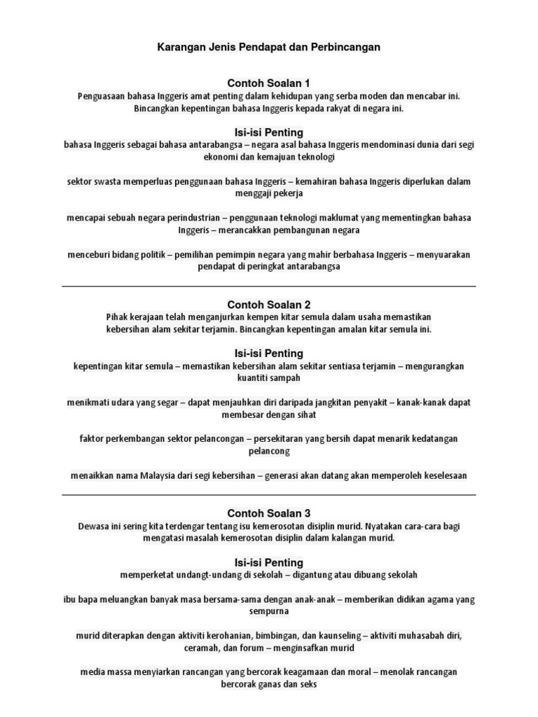 Panduan Menulis Karangan Perbincangan Peringkat Menengah Ekspres. Karangan Jenis Pendapat dan Perbincangan Contoh Soalan 1. Menjadi seorang yang cemerlang adalah impian setiap pelajar.